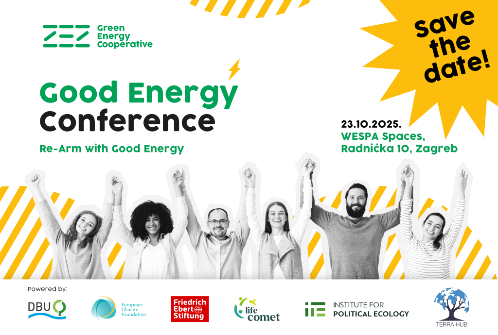 We are proud to announce the third edition of our Good Energy Conference, this year with a tagline Re-Arm With Good Energy. The conference has a regional focus, bringing together key actors of citizen energy from Croatia, Southeast Europe, and neighboring Western Balkan countries.