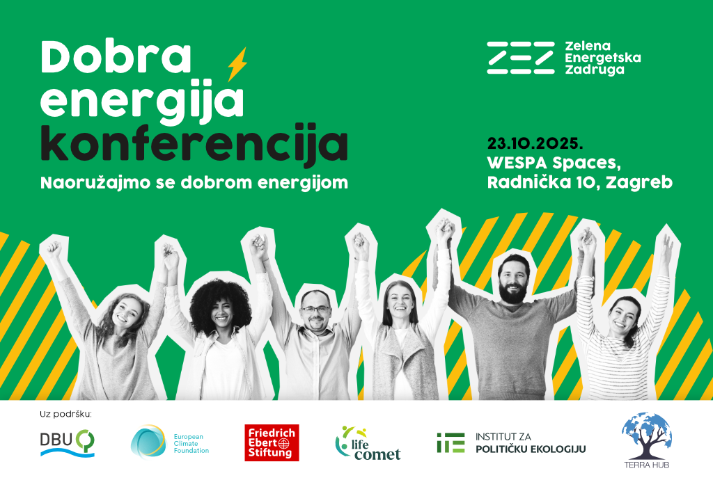 S ponosom najavljujemo našu konferenciju Dobra energija, ove godine pod nazivom Naoružajmo se dobrom energijom. Fokus konferencije je regionalan i okuplja ključne aktere građanske energije iz Hrvatske, regije jugoistočne Europe te susjednih zemalja Zapadnog Balkana. U fokusu nam je suradnja, dijeljenje, stvaranje prostora za razmjenu znanja, iskustava i konkretnih rješenja koja ubrzavaju pravednu energetsku tranziciju u korist građana.